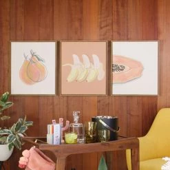World Market Funky Fruit Line Drawn Framed Canvas Wall Art 3 Piece