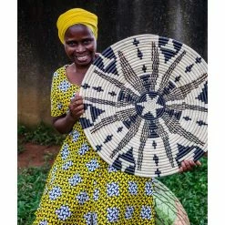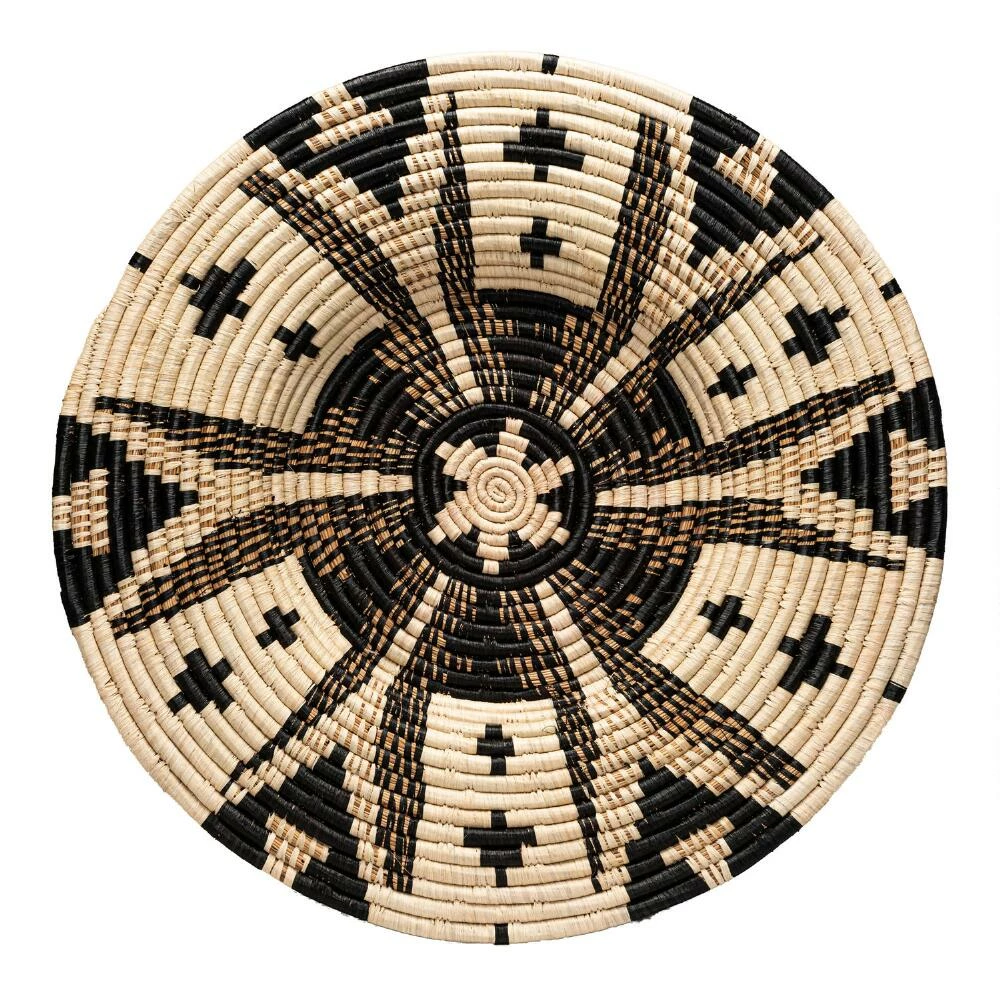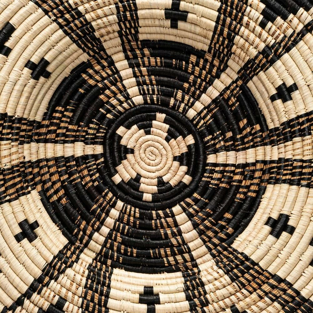 Woven of raffia and banana fibers by artisan women in Uganda, this disc wall decor has unique characteristics thanks to the work of each individual craftsperson. Every geometric piece includes a tag describing the weaver and what creating this art means to her. In collaboration with All Across Africa, these artisans are empowered to pay school fees, gain access to safe housing, food and healthcare and to save for their future and family.