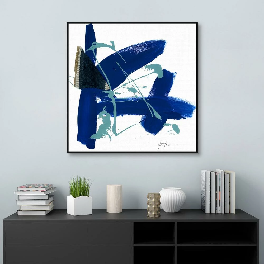 A riot of teal and blue on a clean white canvas, “Baby Blues” captures Dan Houston’s signature combination of courageous color and bold brushwork. The artist uses jazz to set the mood as he paints, a soundtrack that helps bring his innermost thoughts to passionate life. This abstract piece introduces an expressive, eye-catching pop of style wherever it hangs.