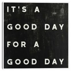 A reminder to embrace the day with the glass half full, this optimistic canvas wall art piece features the sweet sentiment, “It’s a good day for a good day”. Printed with a black ground and bold white font in a coordinating white frame, it’s lighthearted, ready-to-hang wall decor for any kitchen, bedroom or home office.
