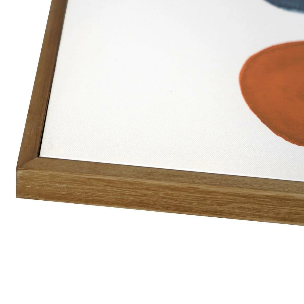 Exuding a soft, organic feel, this framed canvas wall art set features burnt orange, dusty rose and navy-blue abstract shapes set on crisp white. Each modern art print is finished with a coordinating frame and hand-applied gesso brushstrokes for added texture. A versatile decor set, they fill any wall with cool color or create a cohesive feel when spread throughout the home.