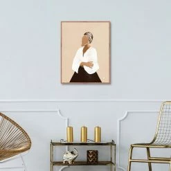 A striking yet simple depiction of a Black woman with gold dangling earrings, this wall art reflects visual artist and illustrator Bria Nicole’s focus on representing women of color with style and grace. This boho-meets-modern piece brings beauty to your decor with its neutral color palette and hand-stained taupe plastic frame.