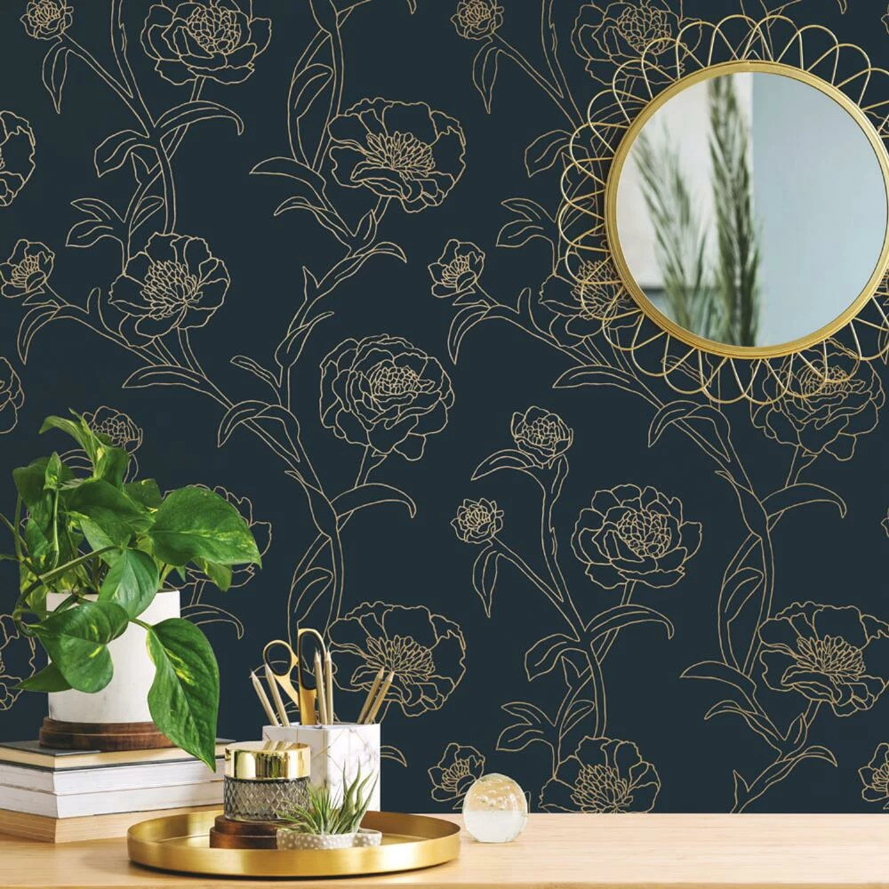 This easy DIY wallpaper adds garden-inspired glamour to any space with its dark blue ground covered with outlines of peony flowers in metallic gold. Simply peel off the backing, stick your new wallpaper to a smooth surface and readjust until it’s exactly where you want it. With a strong, self-adhesive design that won’t leave a sticky residue, it’s an effortless way to transform any wall, backsplash or piece of furniture.