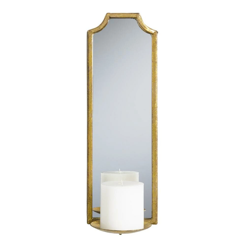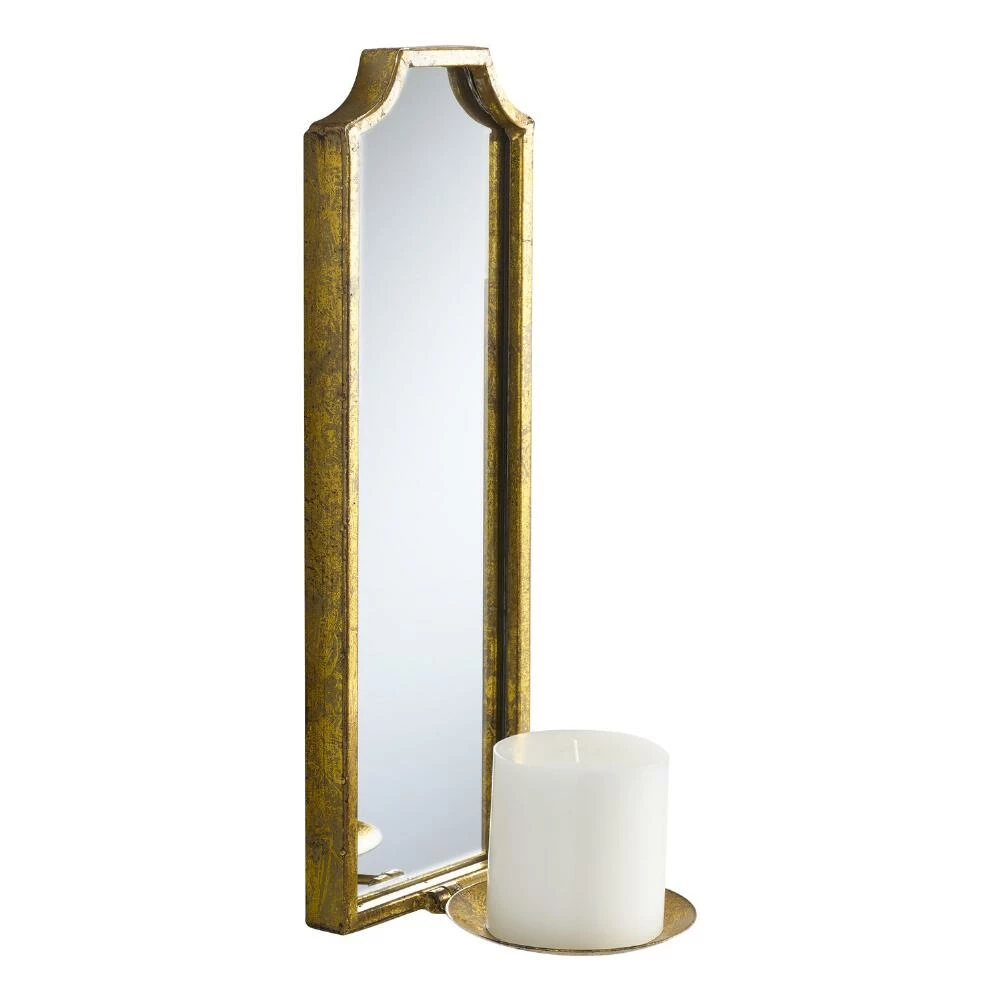 With a mirror panel, our Emma candle sconce reflects the flickering light of a pillar candle for elevated ambience. A notched profile and antique gold finish lend vintage-inspired appeal to your decor.