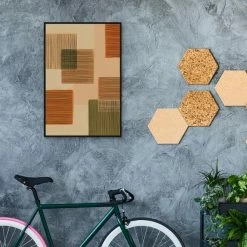 Ukrainian-born artist Alisa Galitsyna captures an array of abstract squares in peach, tan, orange and green tones in this framed and ready-to-hang canvas art. Galitsyna grew up in a small town outside of Kyiv, surrounded by nature, and was exposed to museums, art and theater at a young age. Now residing in Spain, she combines various techniques, textures and colors to express the beauty and simplicity of the world around us.
