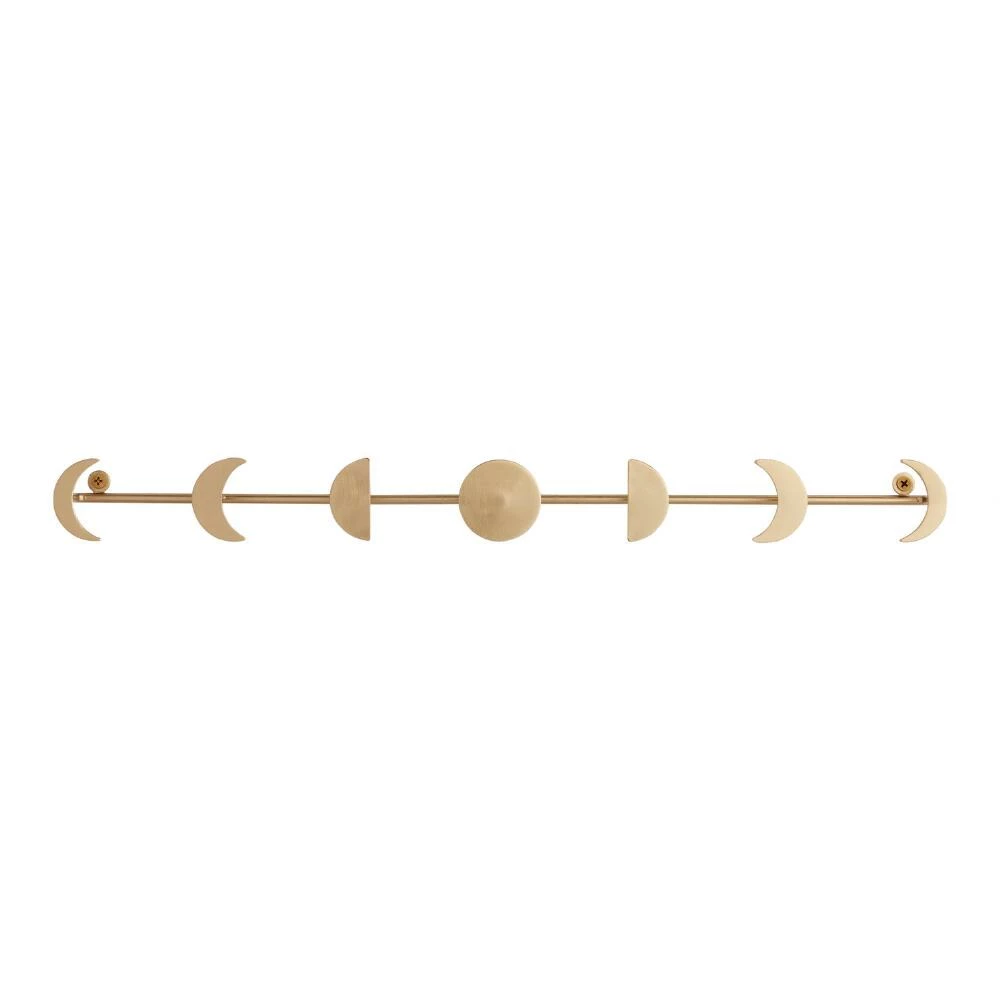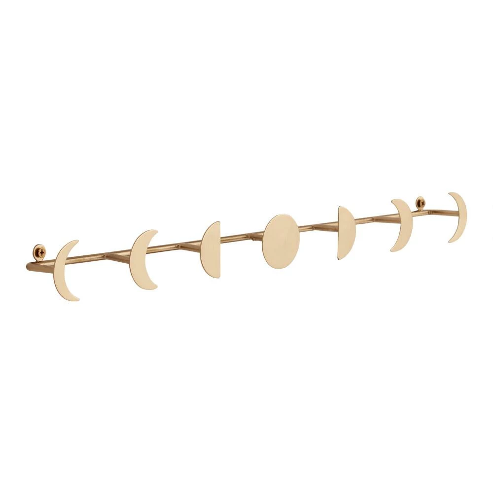 Modeled after the phases of the moon, this lightweight wall rack makes a lunar-inspired catchall for hats, jewelry, scarves and more. Featuring seven hooks affixed on a sleek and simple bar, its glinting gold finish lends a fabulous finishing touch to any room in the home.