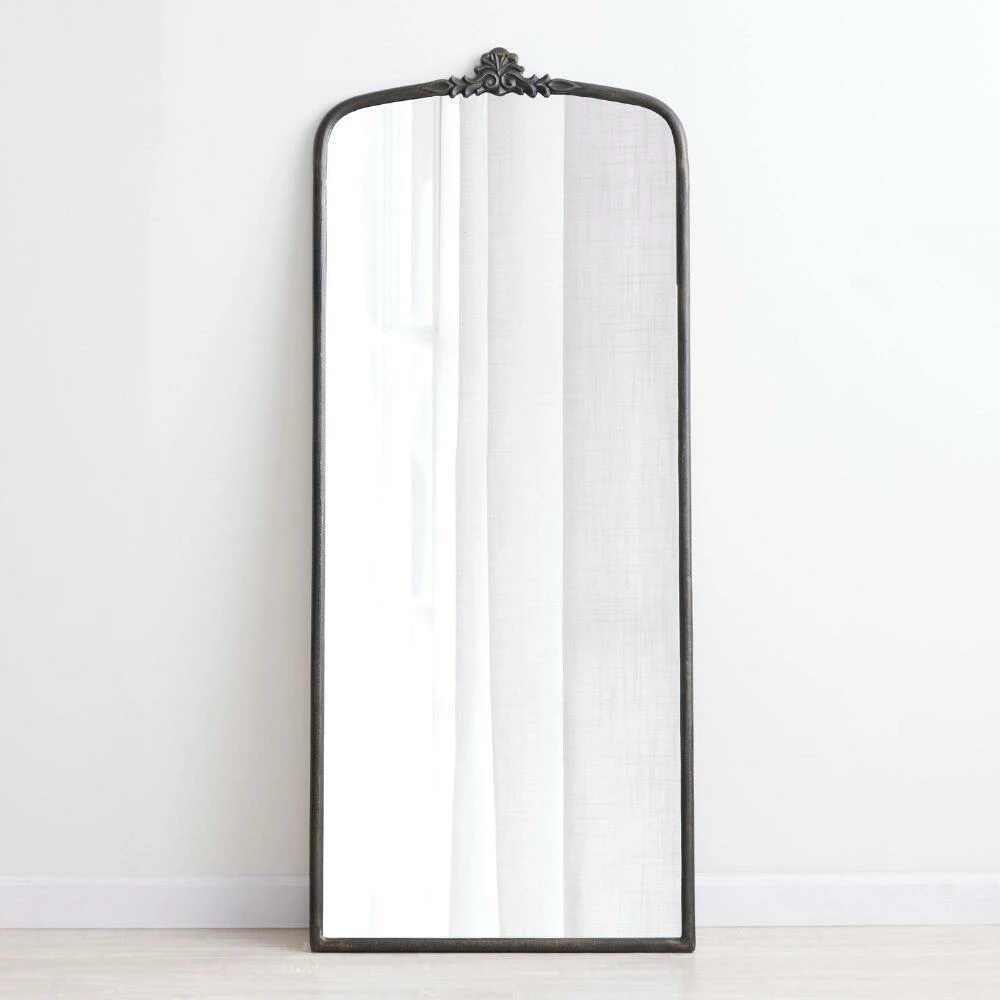A scrolling vintage-inspired floral detail creates an air of elegance on our exclusive full-length floor mirror. Available in bronze or brass finishes, this large mirror adds antique charm when leaned against any wall. Allow this stunning, statement-making piece to enlarge any space and express your classic style.