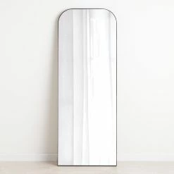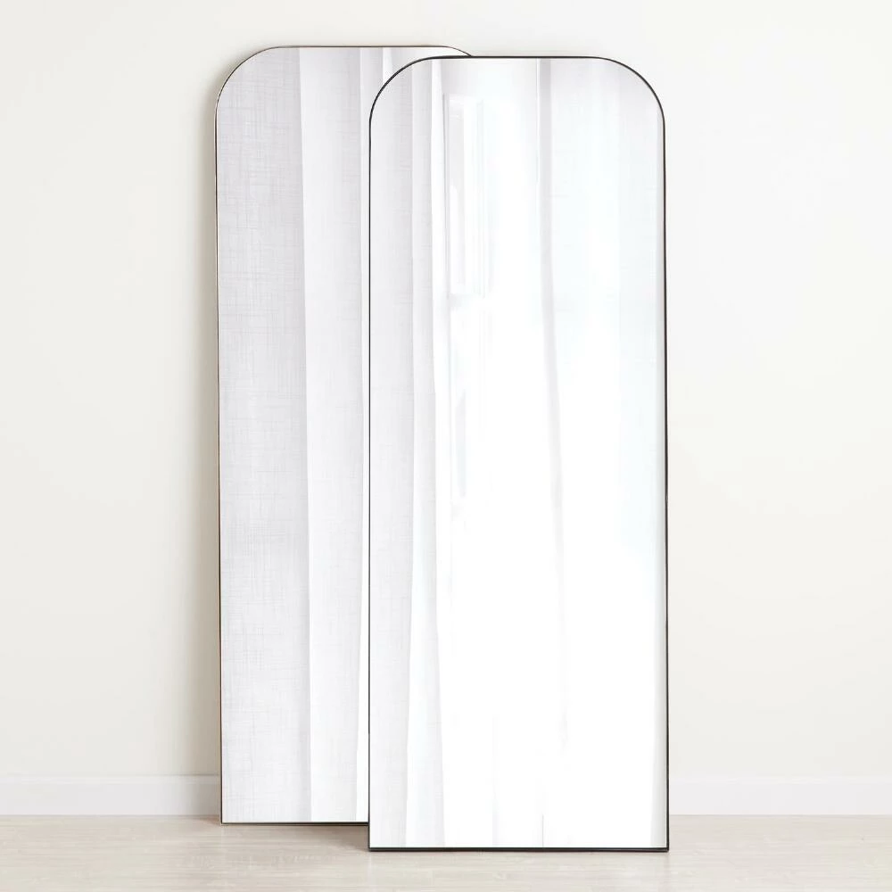Brighten a room with the Mira leaner mirror. Handcrafted by skilled artisans in India, this modern leaning mirror features a thin metal frame in your choice of antique brass and black finishes. With an on-trend arch silhouette, this versatile full-length mirror makes a statement in nearly any decor setting.