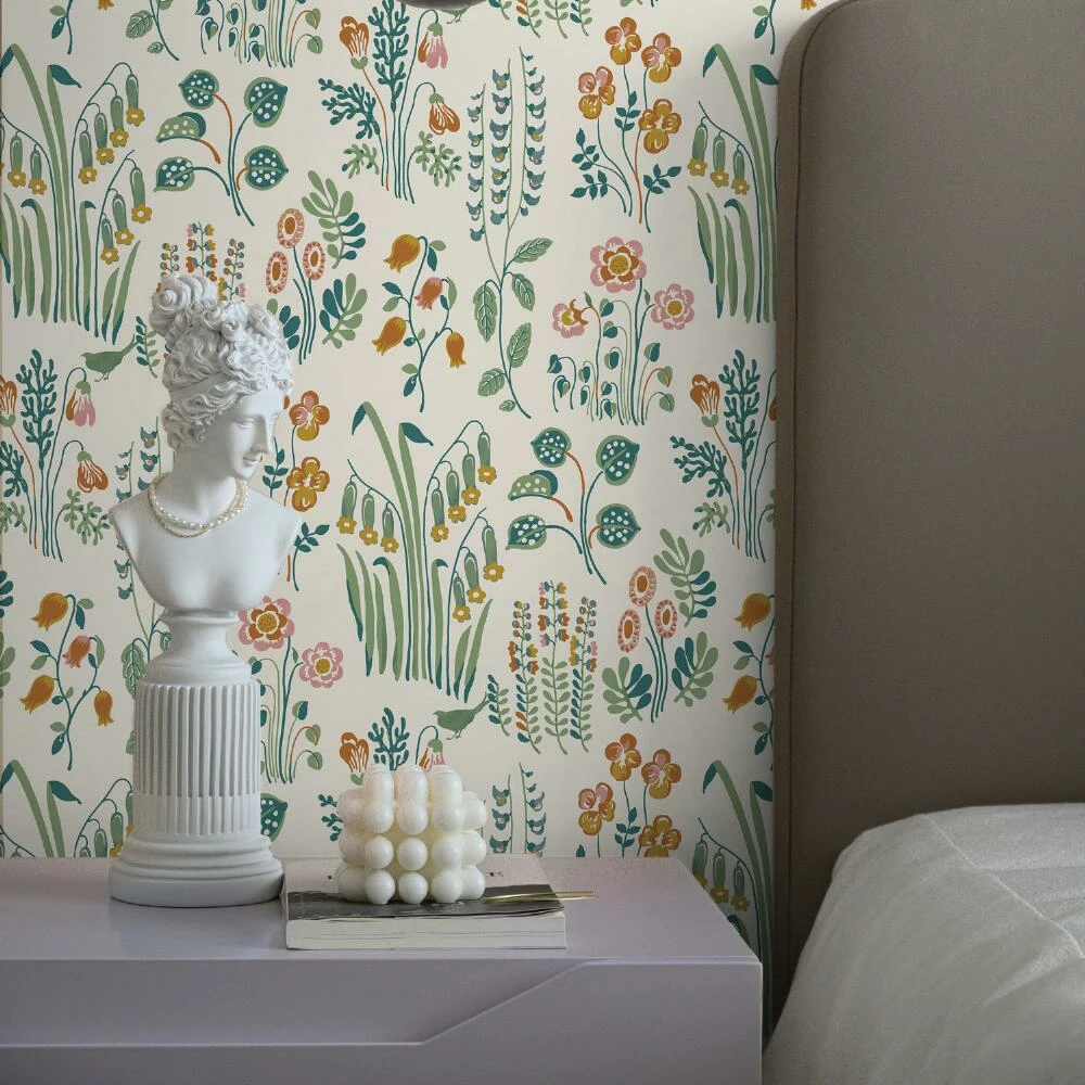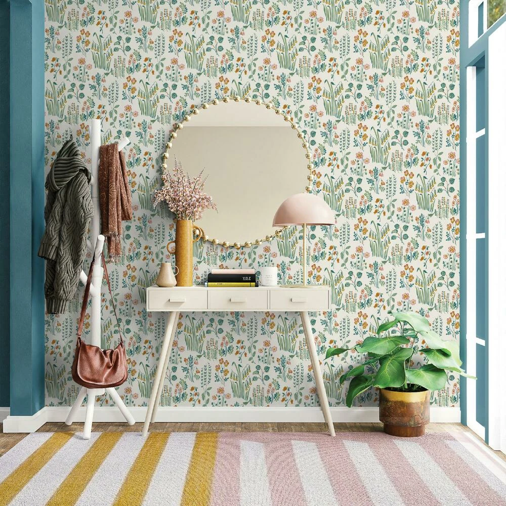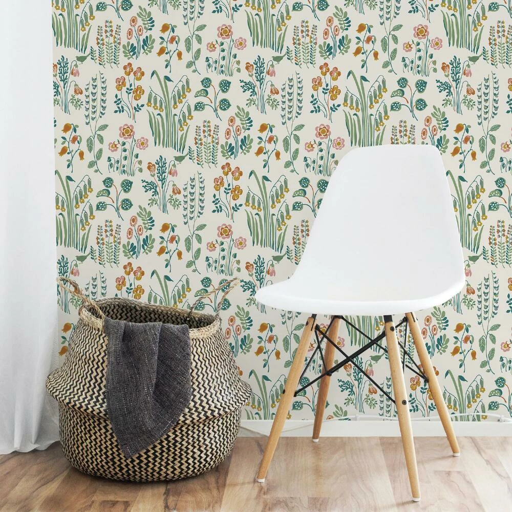 This meadow-inspired floral removable wallpaper brings the whimsy of the outdoors in. Simply peel off the backing, stick your new wallpaper to a smooth surface and readjust until it’s exactly where you want it. With a mess-free self-adhesive design, it uplifts any room or piece of furniture with sweet detail and a palette of cream, green, mustard, pink and teal.