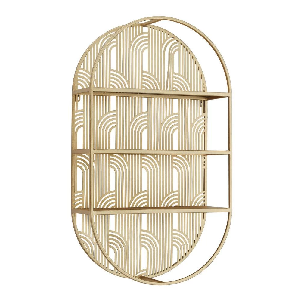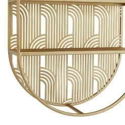 Liven up any wall with a personalized display and handy extra storage with this glamorous gold wall shelf. Designed with an abstract, art deco-style pattern on the backing, its three shelves make a worthy surface for your favorite knickknacks, houseplants or grab-and-go necessities.