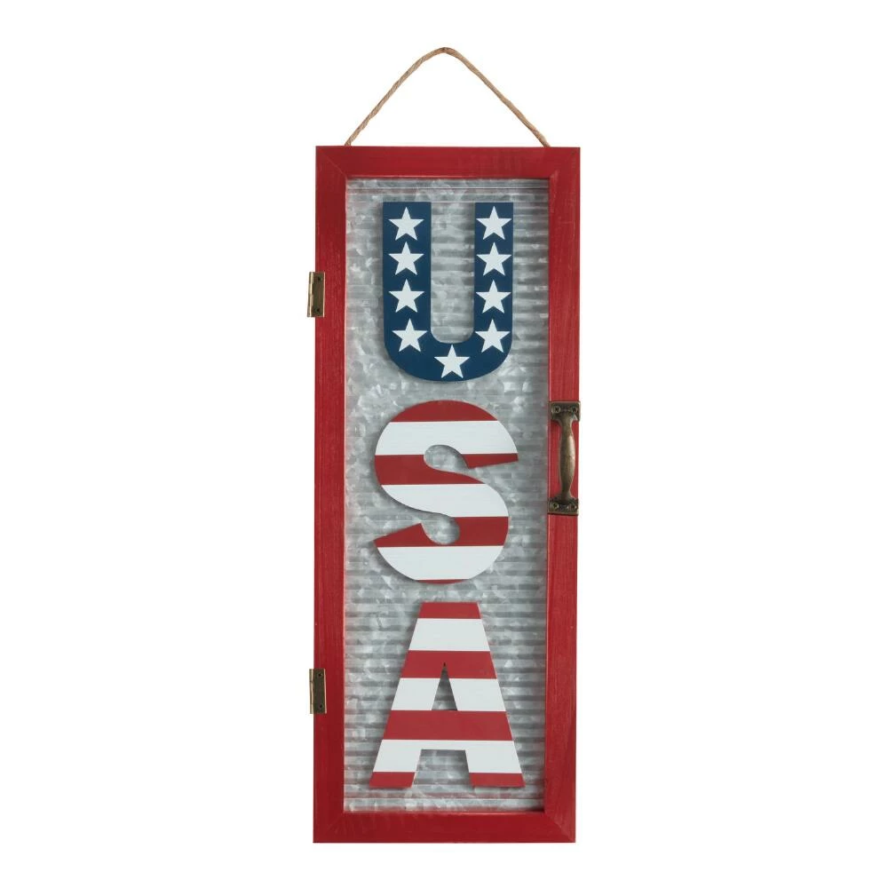Spread patriotic cheer all summer with this wall hanging featuring star and stripe-patterned USA letters set on corrugated metal. Whether you use it to dress up your porch, front door or any wall in your home, this rustic decor is sure to shine on any 4th of July festivity.