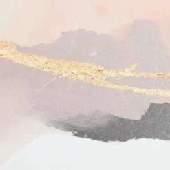 A vivid gold streak pops against layers of gray, pink, orange and black brush strokes in this round gallery-wrapped canvas print. Residing in the coastal town of Devon in the UK, British artist Dan Hobday finds inspiration from the natural beauty around him. Inspired by his grandfather, he began drawing at an early age and now creates his minimal, contemporary work using a mix of ink, acrylic, digital and mixed media.
