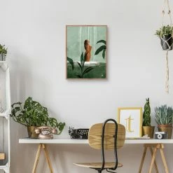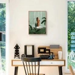 With a focus on representing women of color with style and grace, Bria Nicole’s boho-inflected wall art instantly transforms your space with its tranquil scene. This serene piece depicts a Black woman figure showering under a jungle waterfall and is framed in hand-stained taupe plastic.