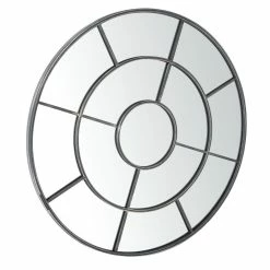 Panes of mirrored glass framed in wood with a black finish give our mirror an architecturally pleasing windowpane effect. Whether hung in an entryway or over a mantel, it instantly opens up a space with reflective light.