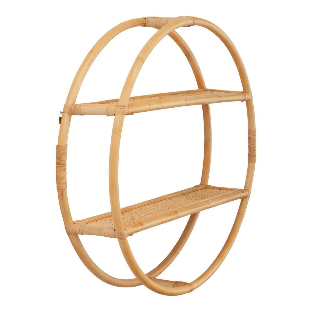 Rich in character, this round rattan two-tier wall storage is an airy, on-trend treasure. It’s a refreshing place to display framed photos, houseplants and petite keepsakes while adding a touch of natural texture to the room.