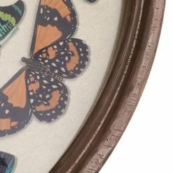 Featuring dozens of replica butterflies in a kaleidoscope arrangement of vivid hues, our exclusive wall decor is a vintage-inspired delight in a rustic round frame. You don’t have to be a lepidopterist to find joy in the brilliant patterning of the assorted faux butterflies popping from the sophisticated linen background of this framed wall art.