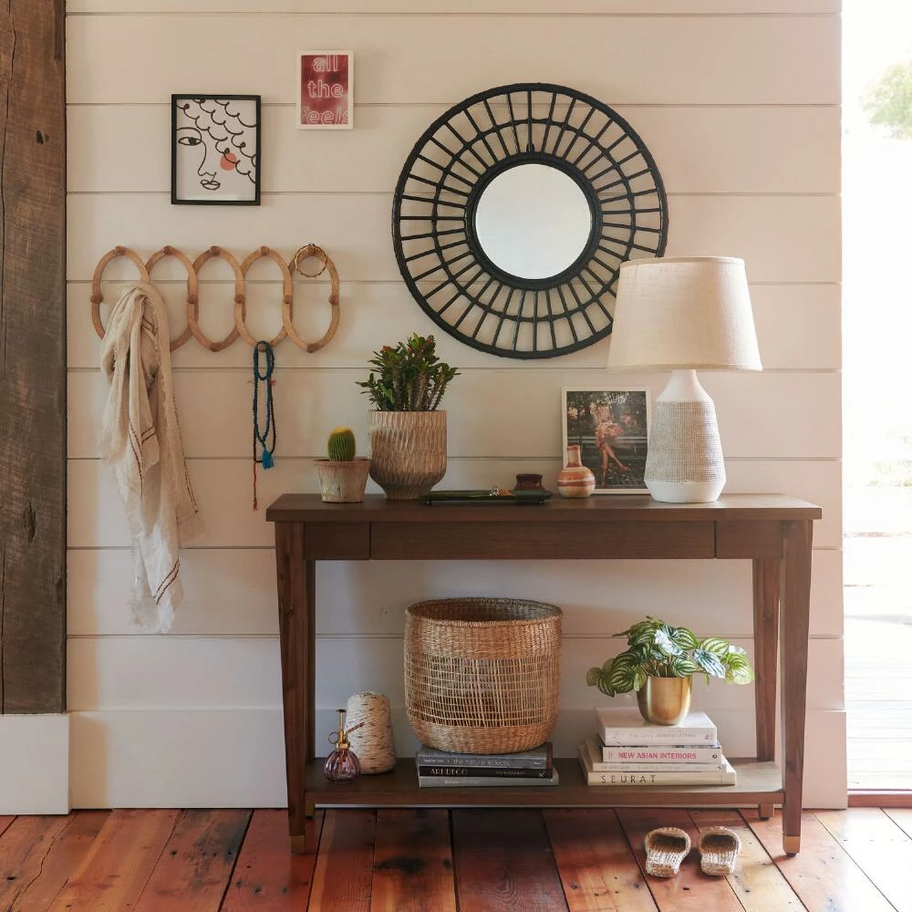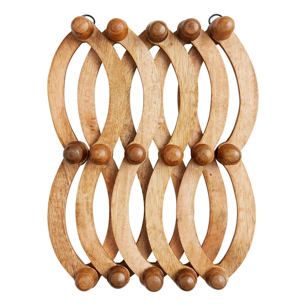 A customizable storage solution, our rustic mango-wood wall rack features a functional expanding and retracting accordion shape. Crafted by artisans in India, we imagine this clever piece adorned with your favorite scarves, hats or jewelry, creating an aesthetic that’s authentically you.