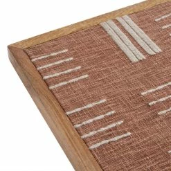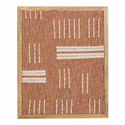 A mix of textures and colors gives our wall art its standout appeal. Handmade by artisans in India, this piece features abstract ivory-toned line embroidery on a rust-hued cotton slub backdrop. Framed in mango wood, this ready-to-hang piece is an artful addition to boho, mid-century and contemporary spaces.