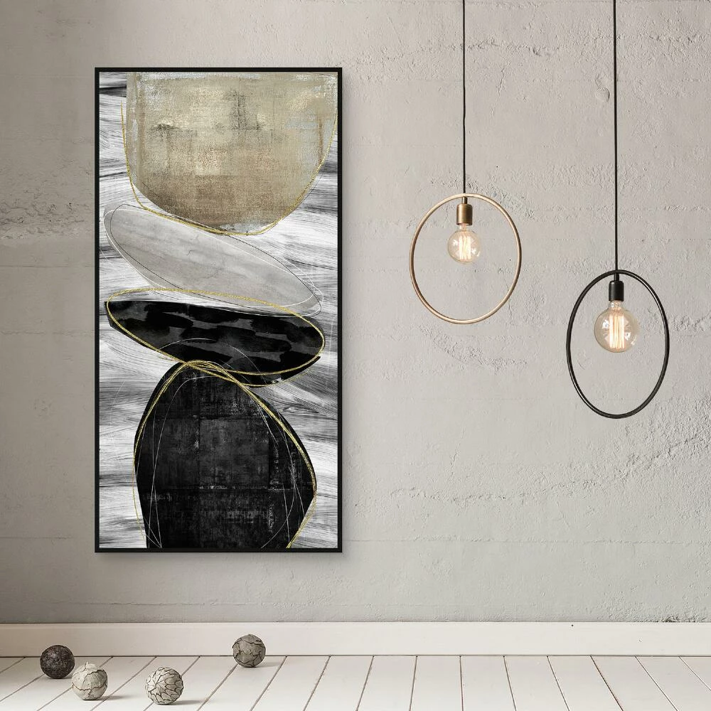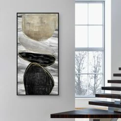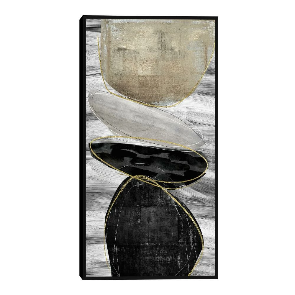 Rocks in hues of black, gray, white and sand appear to be stacked in a staggered pile in this eclectic piece by Nikki Chu. With a design philosophy grounded in architectural aesthetics and global influences, the famed celebrity designer creates affordable luxury pieces for modern homes. This canvas brings neutral shades and contemporary style to any wall.