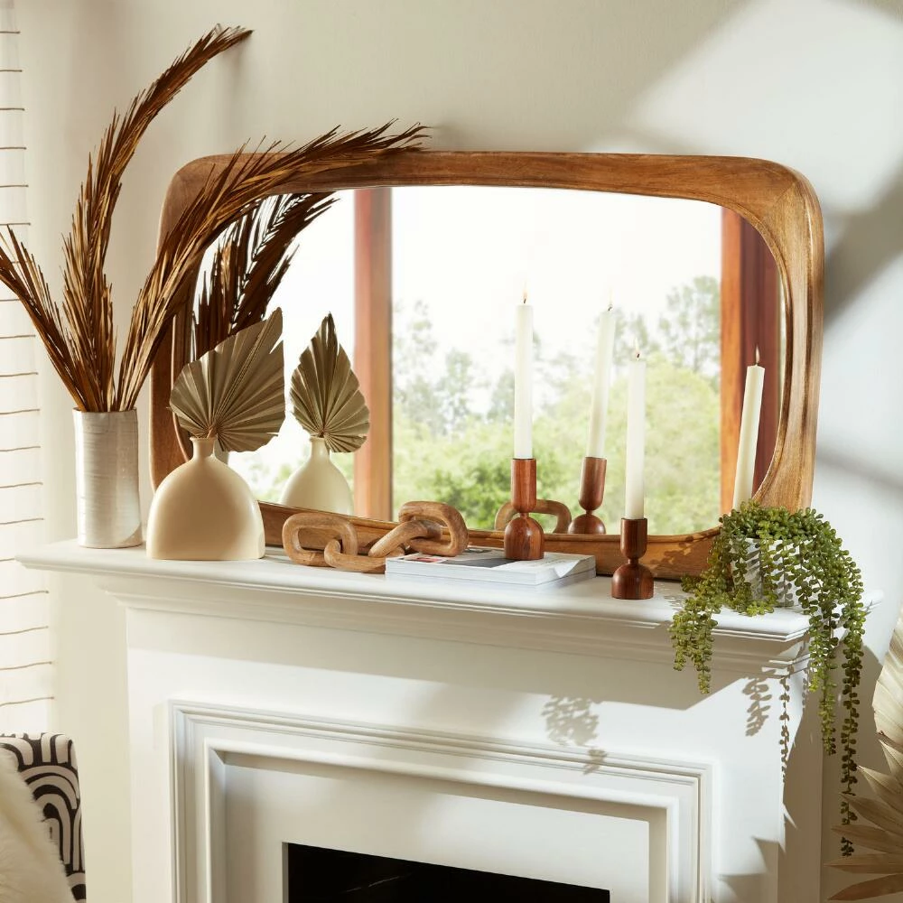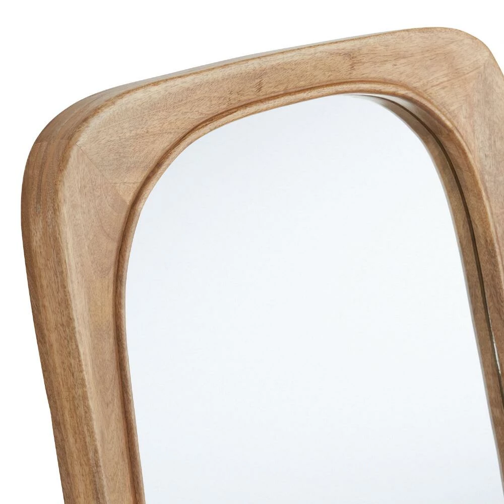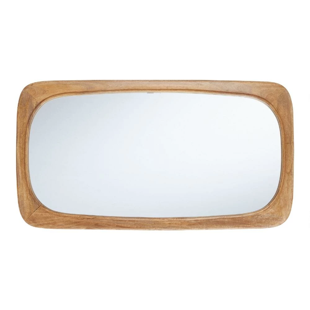From Saharanpur, India, our wall mirror is handcrafted of mango wood with rounded edges and dimensional inner detailing. An increasingly rare craft, the skill and technique required to create this work of art takes years to learn and is only preserved by the passing down of knowledge through generations of family artisans. In a warm natural finish, this rectangular mirror is right at home in contemporary, mid-century and boho-styled rooms.