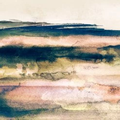 This beautiful, expansive framed canvas wall art features a blend of watercolors in natural hues with pops of blue and green. This abstract wall decor in three sizes is printed on canvas and accented by a natural wood frame, bringing movement and a modern touch to your home.