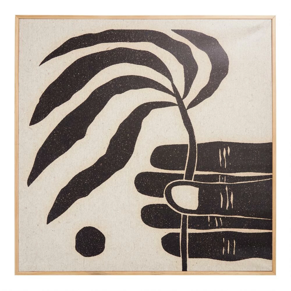 A captivating focal point in any room, this modern canvas wall art is elevated with hand-painted acrylic embellishments and a pine-finished frame. Self-taught artist and printmaker David Schmitt’s fascination with symbols of culture and compassion is reflected in this minimalist black and beige artwork depicting a hand holding a sprouting seed.