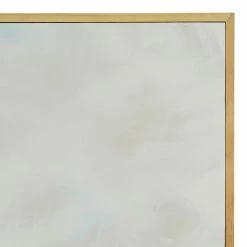 Artist Melissa Mary Jenkins captures a dreamy abstract coastal scene on this landscape wall art with a muted color palette of peach, green and lavender. Jenkins derives her own inks and seeks ways to craft art with zero materials waste. Rendered in a digital space before being finished with hand-painted embellishments for added texture, this striking wall decor is printed on canvas and ready to display in a natural pine wood frame.
