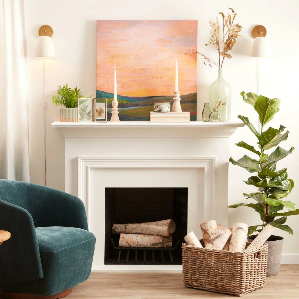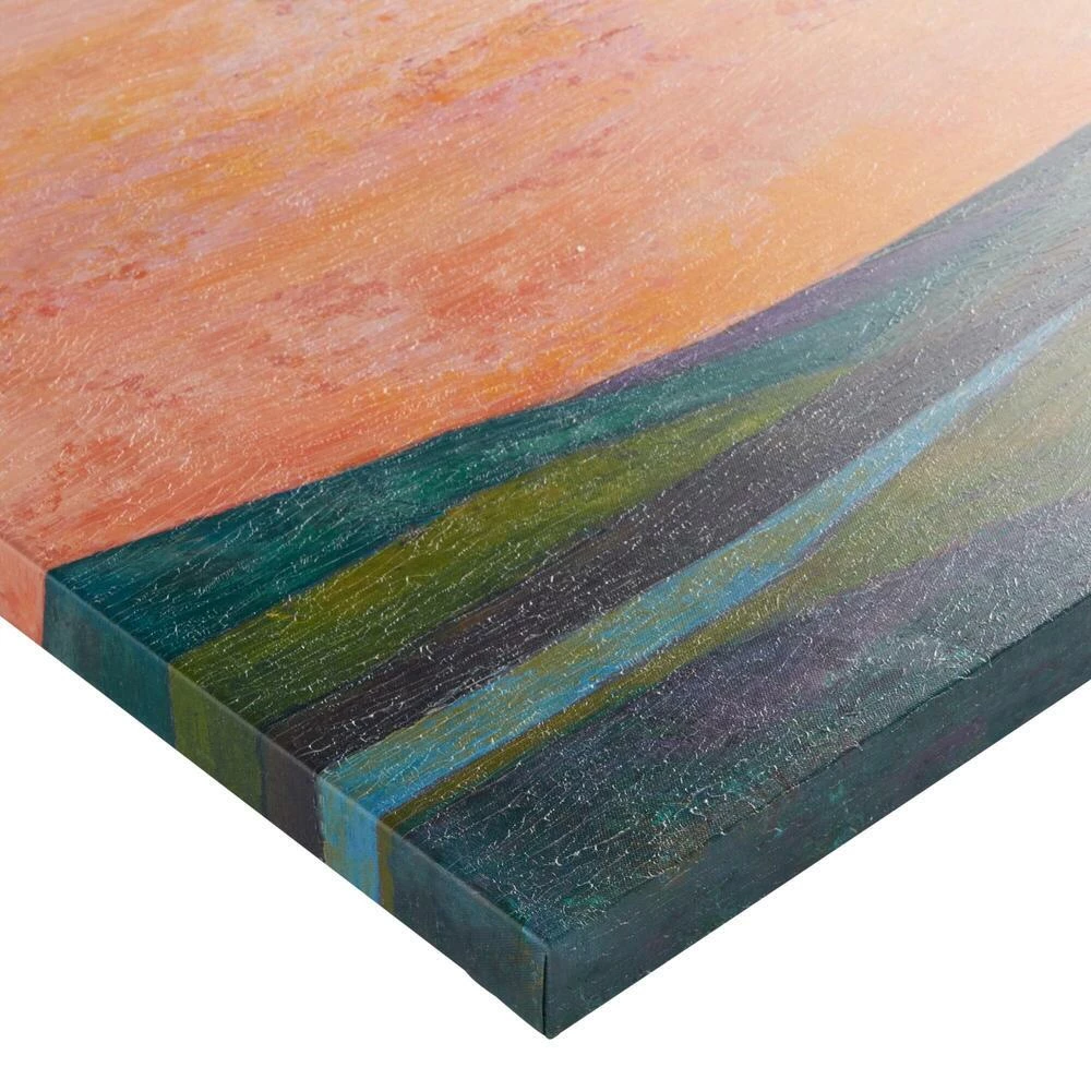 This layered landscape wall art brings fresh color to your bedroom, living space or entryway. Created by Mediterranean-born furniture artist and painter Mehmet Altug, it showcases shades of lavender, orange, blue and green that meld together into a dreamy scene. Gallery-wrapped to continue the work on all exposed sides, this quality canvas wall decor captivates from every angle.