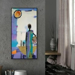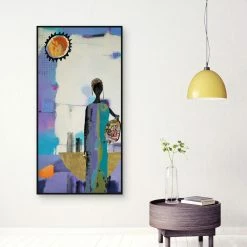 Cool hues of lavender and cerulean blue under an orange desert sun create a dreamlike scene for an elegant female figure in this absorbing piece by Nikki Chu. Featuring a hand-stained frame with a saturated-black finish, this flush-framed canvas evokes intrigue and wonder. With a design philosophy grounded in architectural aesthetics and global influences, the famed celebrity designer creates affordable luxury pieces for modern homes.