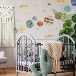 Take your space to another galaxy with these DIY peel-and-stick planet decals rendered in soft, watercolor hues. Simply peel off the backing, stick to a smooth surface and readjust until all the planets align exactly how you like. With a strong, self-adhesive design that won’t leave a sticky residue, it’s an effortless way to transform any play room or kid’s bedroom.