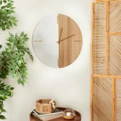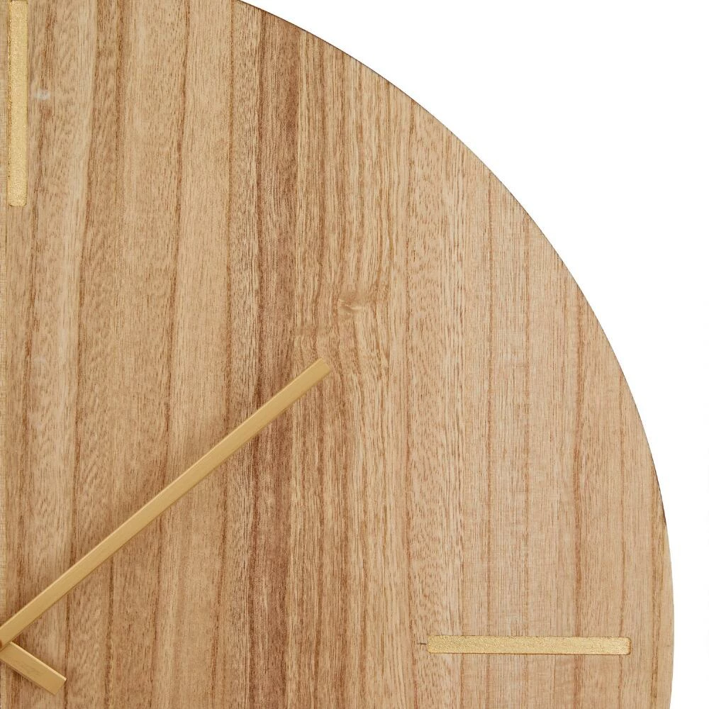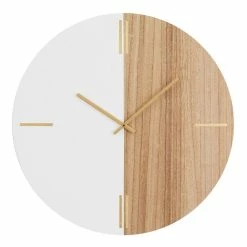 A modern way to tell time, this minimalist clock features a numberless face finished in light brown and white. Gold hands and hour lines pull this piece together for a sophisticated look.