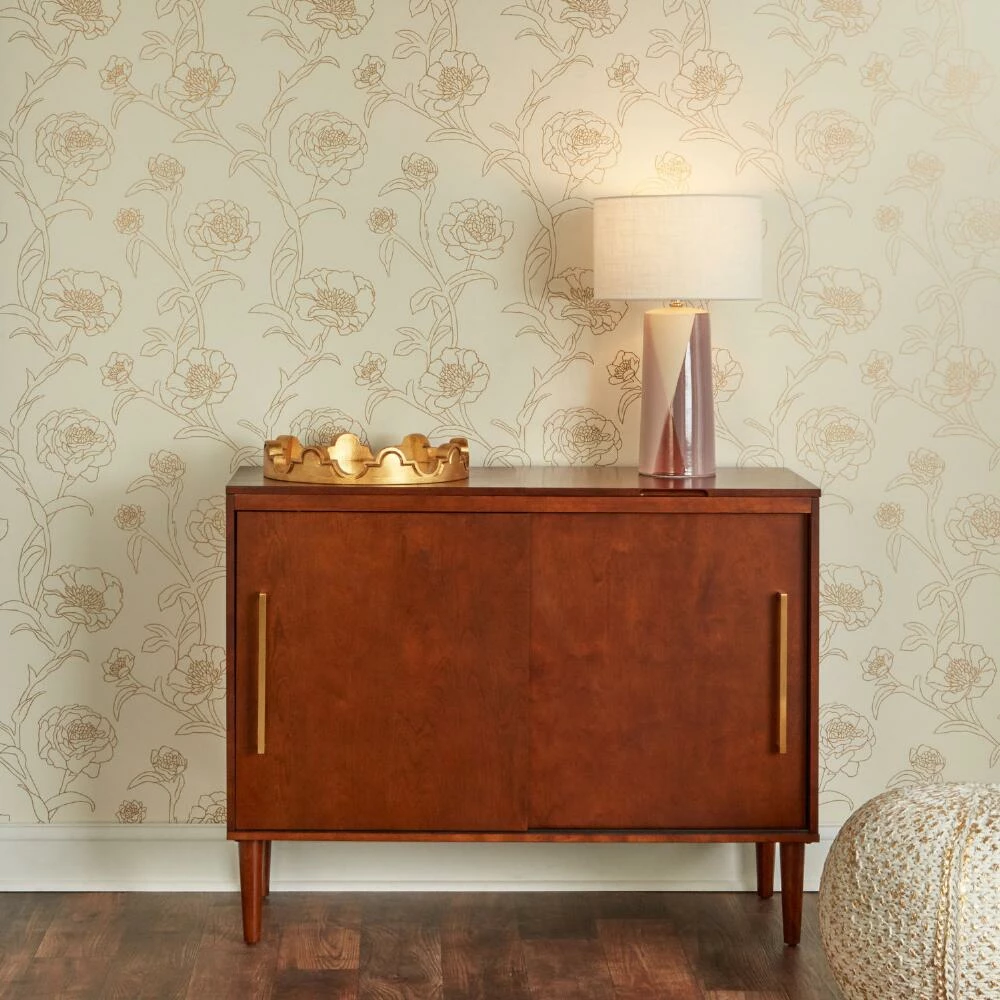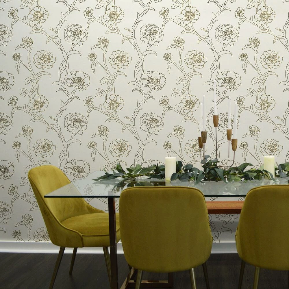 This easy DIY wallpaper adds garden-inspired glamour to any space with its off-white ground covered with outlines of peony flowers in metallic gold. Simply peel off the backing, stick your new wallpaper to a smooth surface and readjust until it’s exactly where you want it. With a strong, self-adhesive design that won’t leave a sticky residue, it’s an effortless way to transform any wall, backsplash or piece of furniture.