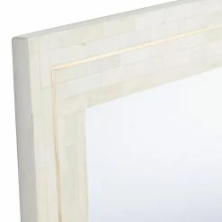 To create our exclusive mirror, pieces of sustainably sourced bone are intricately arranged in a geometric mosaic pattern and accented with a gleaming inlaid brass outline. Handmade by artisans in India, this wall mirror gets its stunning beauty the meticulous craftsmanship that goes into each piece. This modern mirror makes an elegant statement in the bedroom or entryway.