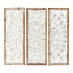 Bring farmhouse charm to your space with this three-panel wall decor. Each piece features intricate carvings that create a continuous floral motif across all three panels. This rustic statement piece is a gorgeous way to pull traditional and country-cottage-style rooms together.